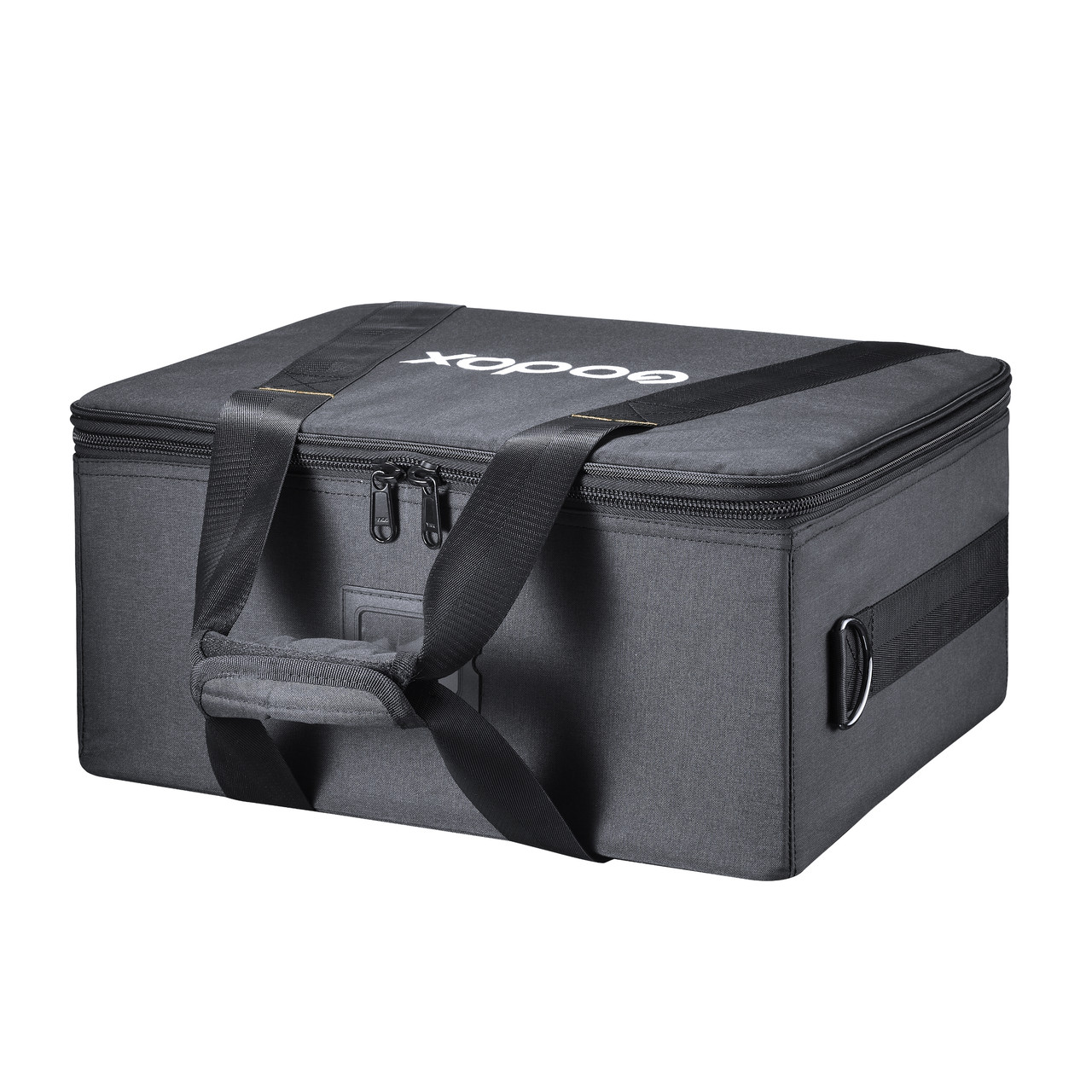 Сумка-кейс Godox CB32 на молнии с двумя ручками и наплечным ремнем вмещает все предметы комплекта. Внутренние размеры CB-33 составляют 30x40x18 см, пространство разделено переставными перегородками. Внешние размеры компактны – 32x44x22 см.